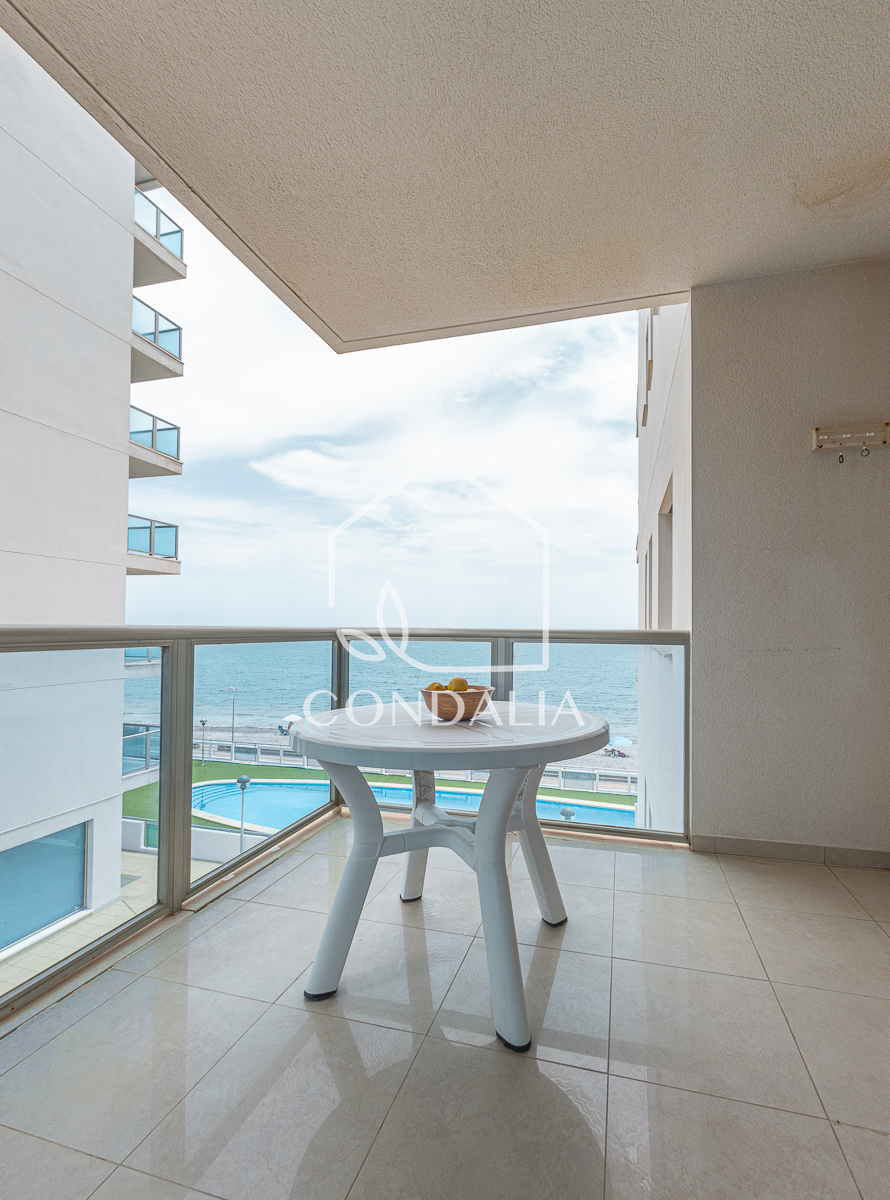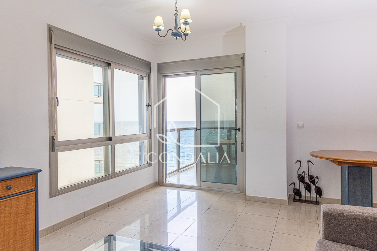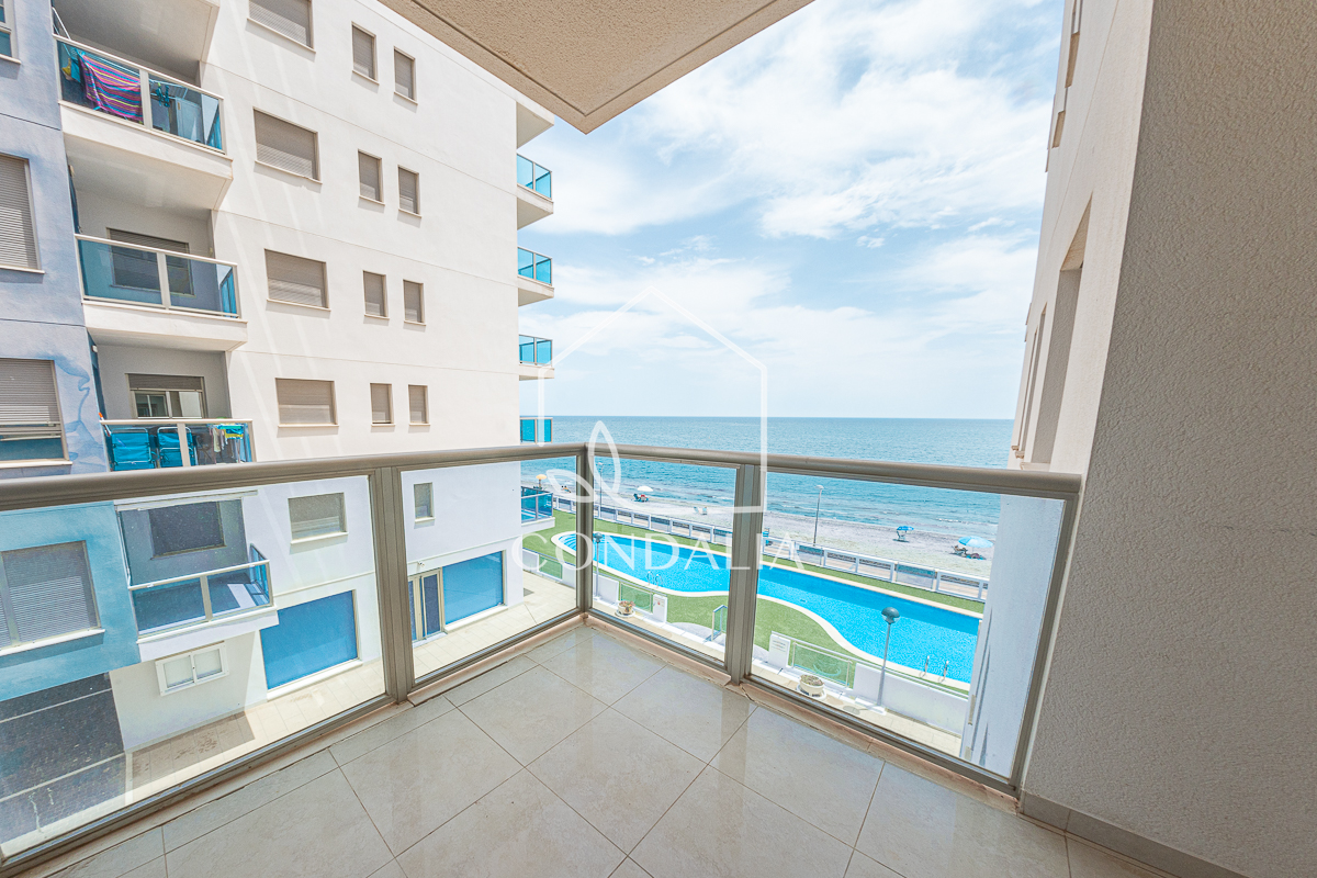 Magnífico apartamento de 2 dormitorios y 2 baños, uno de ellos en suite, ubicado en primera línea del Mar Mediterráneo con vistas a ambos mares. Incluye 1 plaza de parking y trastero en el precio. Está amueblado y completamente equipado con cocina moderna que incluye vitrocerámica, horno, extractor de humo, lavavajillas, frigorífico, microondas y lavadora, , aire acondicionado centralizado, bomba de calor y TV.