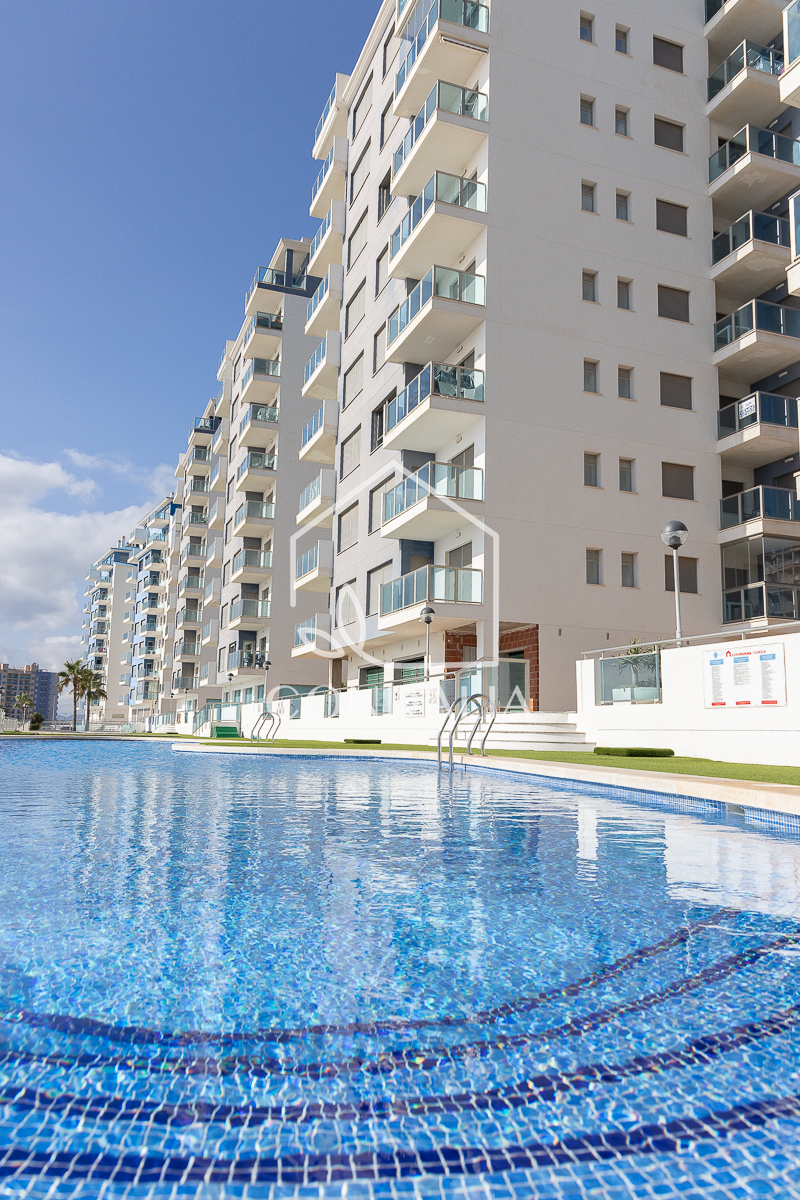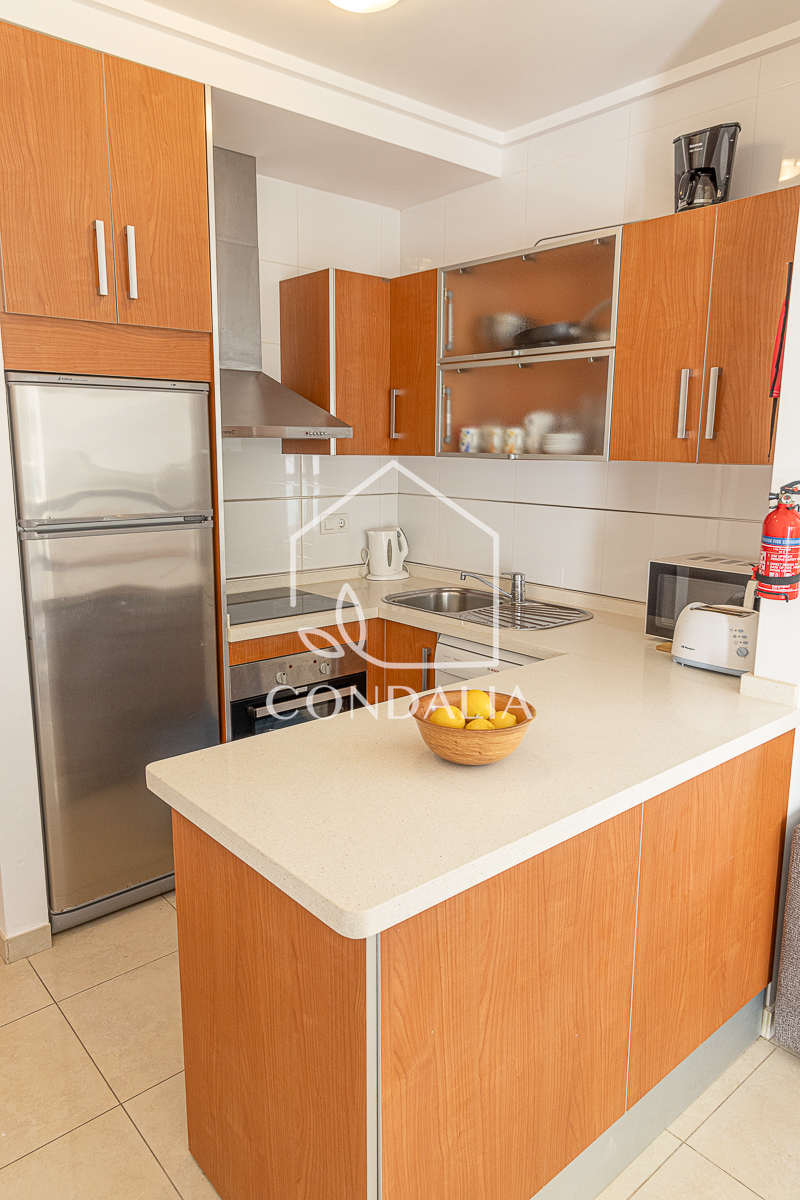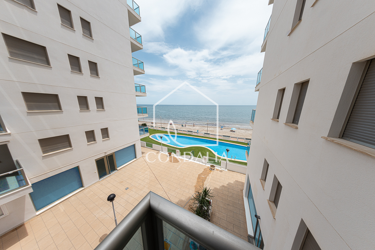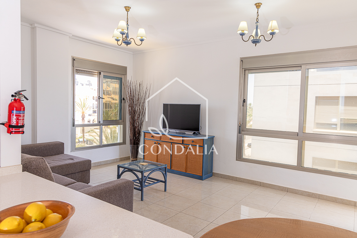 Magnífico apartamento de 2 dormitorios y 2 baños, uno de ellos en suite, ubicado en primera línea del Mar Mediterráneo con vistas a ambos mares. Incluye 1 plaza de parking y trastero en el precio. Está amueblado y completamente equipado con cocina moderna que incluye vitrocerámica, horno, extractor de humo, lavavajillas, frigorífico, microondas y lavadora, , aire acondicionado centralizado, bomba de calor y TV.