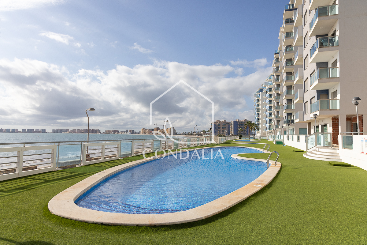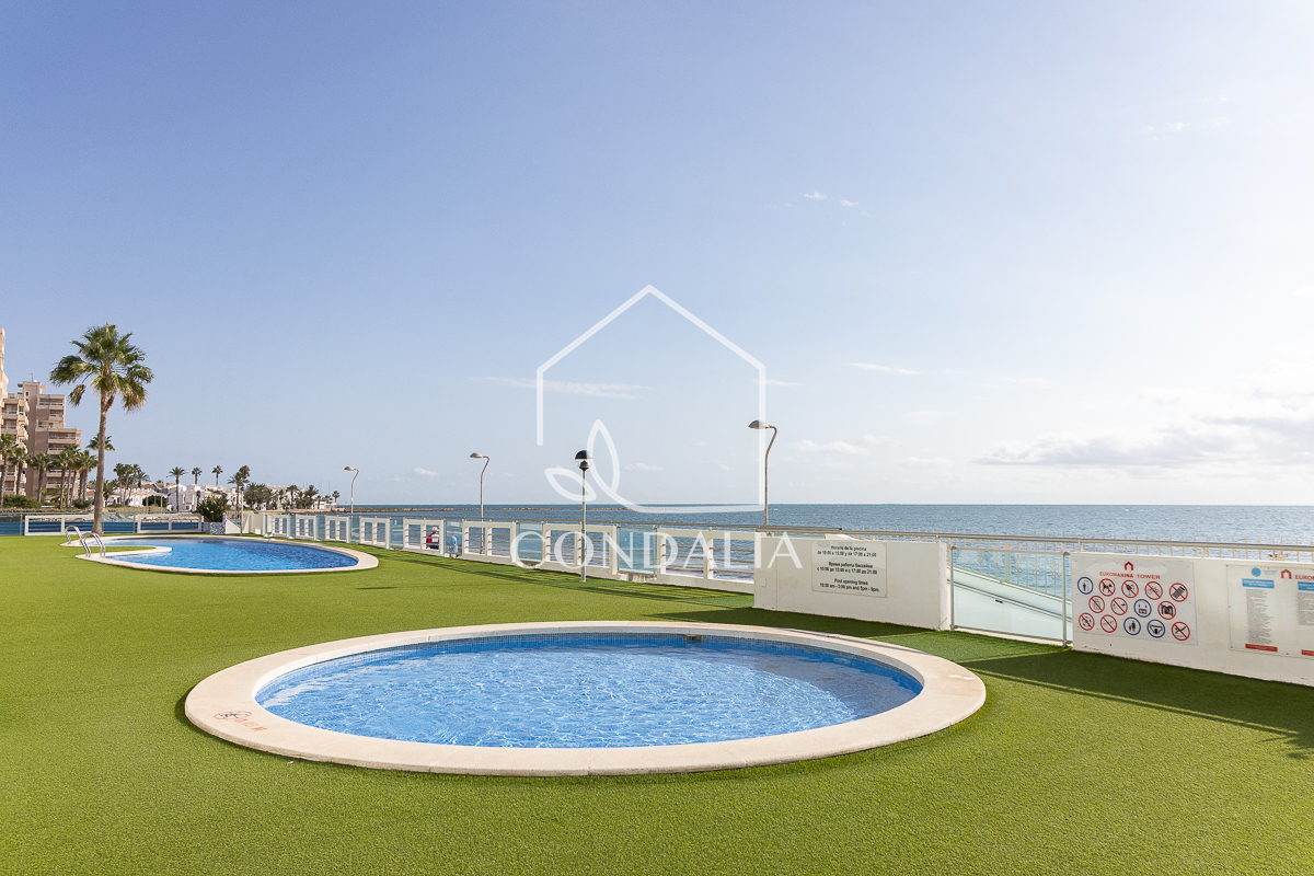La urbanización Euromarina, construida en 2007, se encuentra en el km 16,5 de La Manga del Mar Menor, en primera línea del Mediterráneo y segunda línea del Mar Menor. Cuenta con una magnífica piscina comunitaria y acceso directo a la playa. Este apartamento es perfecto para quienes buscan un estilo de vida privilegiado junto al mar, con todas las comodidades.
