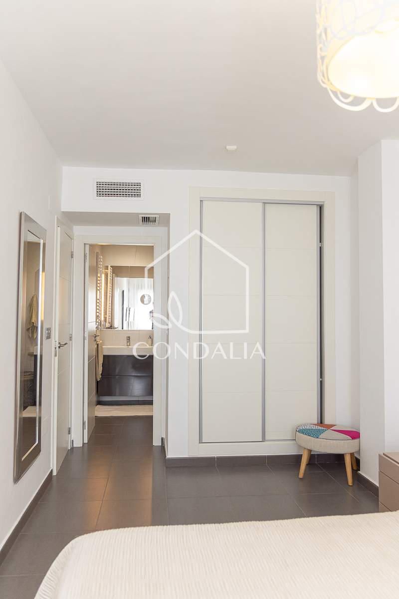 La planta inferior alberga 3 amplios dormitorios, incluyendo una suite principal con baño privado, asegurando comodidad y privacidad. Además, uno de los dormitorios cuenta con su propia terraza, un rincón perfecto para disfrutar de momentos tranquilos al aire libre. Los 2 baños en esta planta están diseñados con materiales de primera calidad, ofreciendo un toque de lujo y funcionalidad.