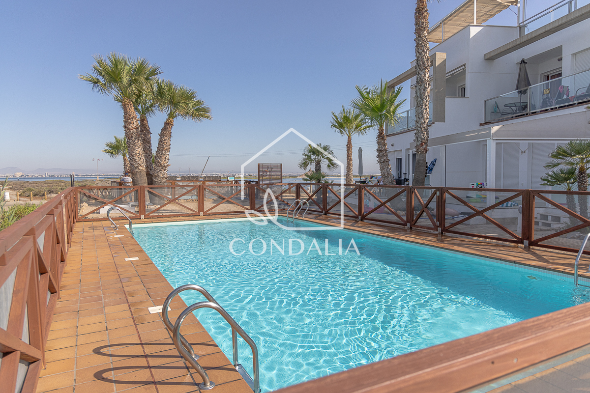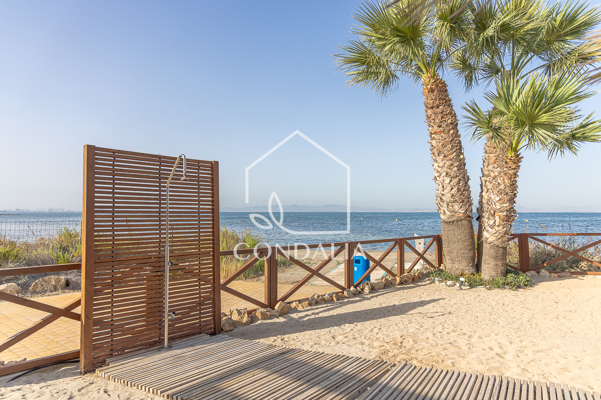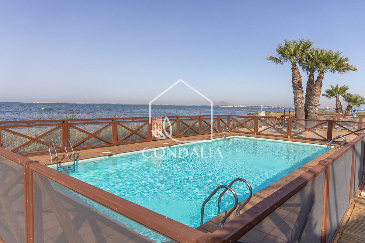 Moderno y tranquilo piso en primera linea del mar al final de la manga del mar menor, en Veneziola.  Brinda un estilo de vida pacifico en contacto con la naturaleza. Ubicado en un primer piso con ascensor, esta luminosa vivienda de 82 m2 ofrece  un espacio bien distribuido, además de una terraza con vistas únicas. La propiedad cuenta con 2 dormitorios, 1 baño y cocina abierta. También incluye plaza de parking propia, piscina y solarium de arena natural.