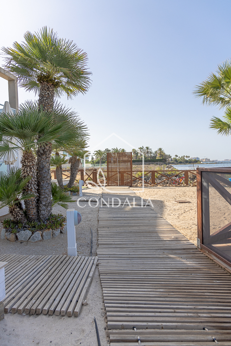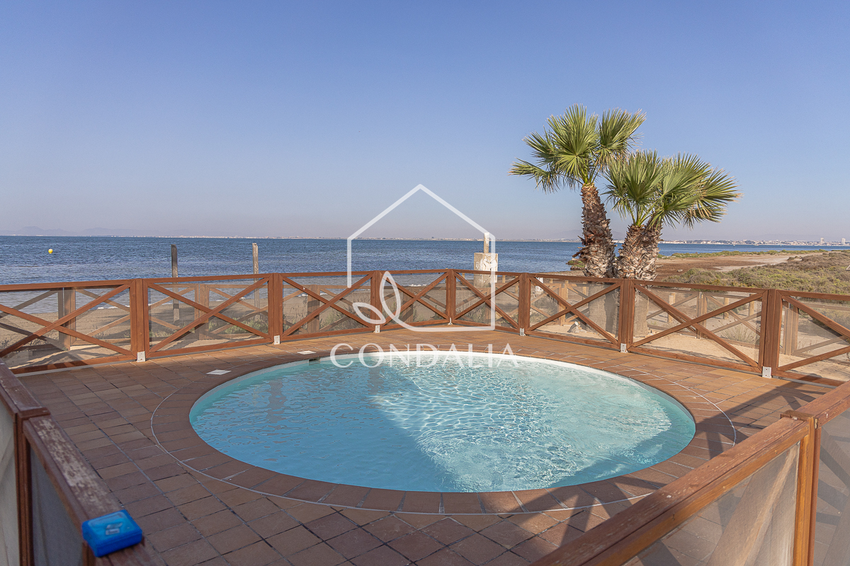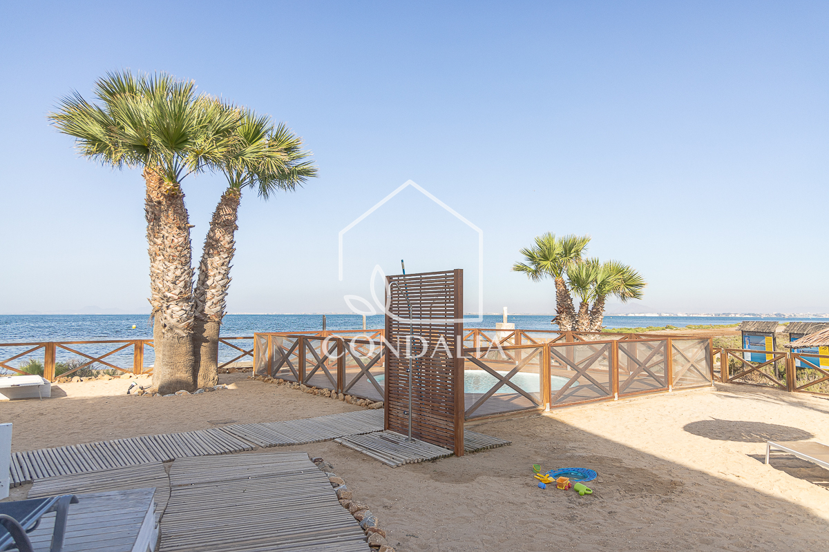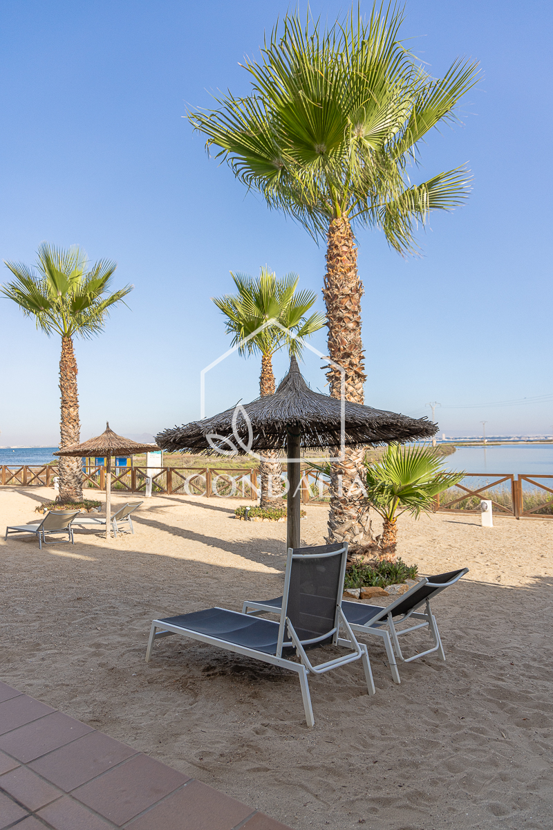Moderno y tranquilo piso en primera linea del mar al final de la manga del mar menor, en Veneziola.  Brinda un estilo de vida pacifico en contacto con la naturaleza. Ubicado en un primer piso con ascensor, esta luminosa vivienda de 82 m2 ofrece  un espacio bien distribuido, además de una terraza con vistas únicas. La propiedad cuenta con 2 dormitorios, 1 baño y cocina abierta. También incluye plaza de parking propia, piscina y solarium de arena natural.